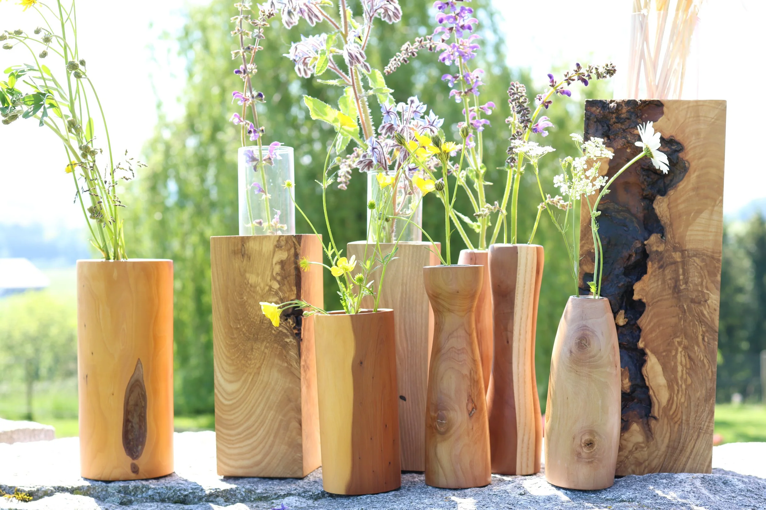 Blumen sind purer Balsam für die Seele. Unsere handgefertigten Vasen aus diversen Holzarten heben die natürliche Schönheit deiner Blütenschätze hervor und lassen sie in ihrer vollen Pracht erstrahlen. Die lebendige Maserung des Holzes bildet einen harmonischen Kontrast zu zarten Blüten und frischem Grün. Jedes dieser naturverbundenen Unikate verleiht deinem Blumenstrauss einen besonderen Rahmen und bereichert dein Zuhause mit einem Hauch von Waldromantik. Finde jetzt das perfekte Gefäss für deine nächste florale Kreation.
